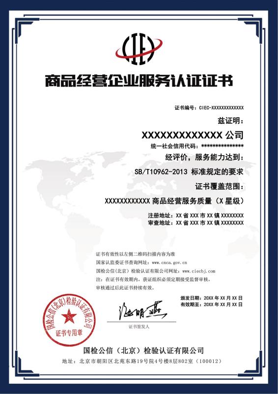 商品经营企业服务认证证书