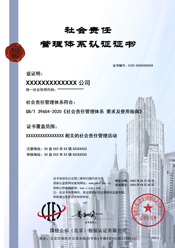 社会责任管理体系认证证书