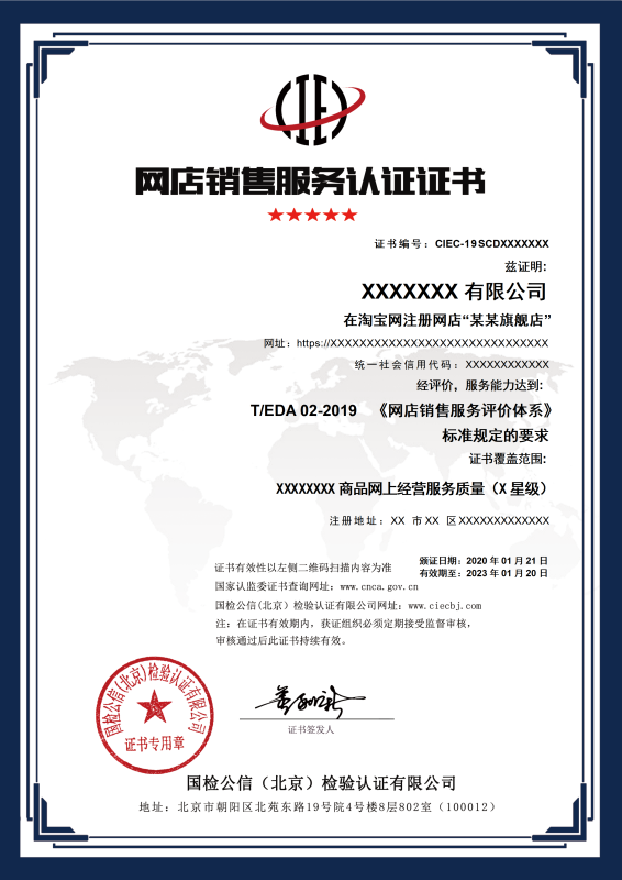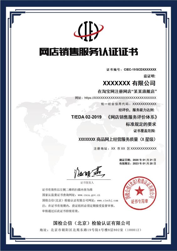 网店销售服务认证证书