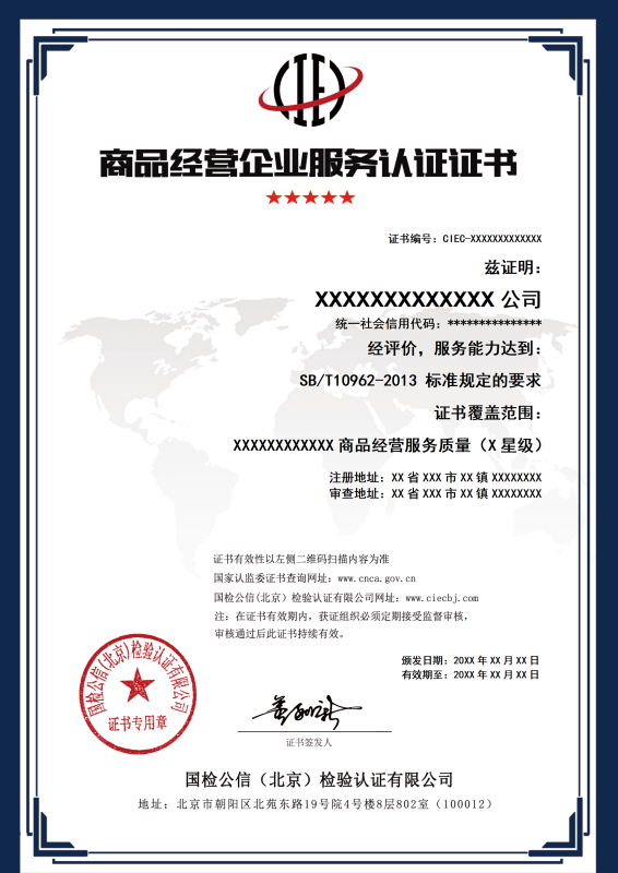 商品经营企业服务认证证书