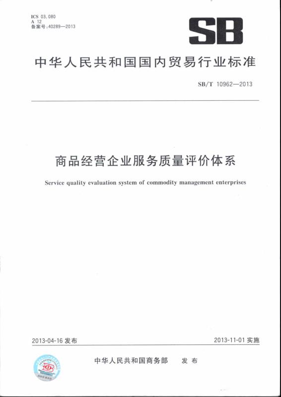 SB/T10962-2013商品经营企业服务认证标准-点击查看全文