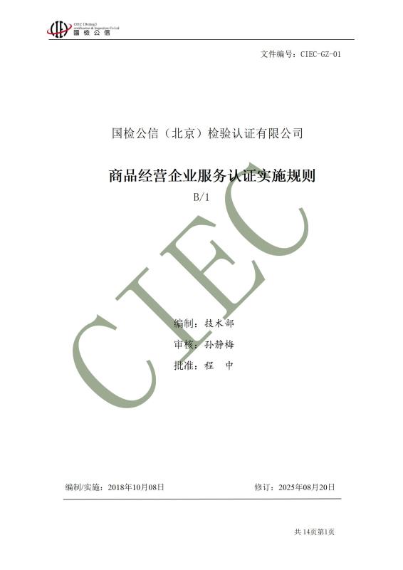 文件编号:CIEC-GZ-01 商品经营企业服务认证实施规则 版本:B/1