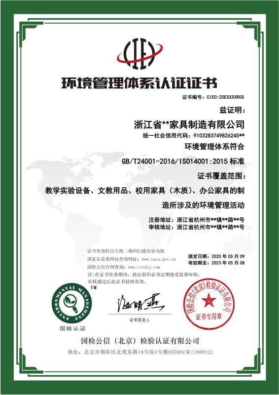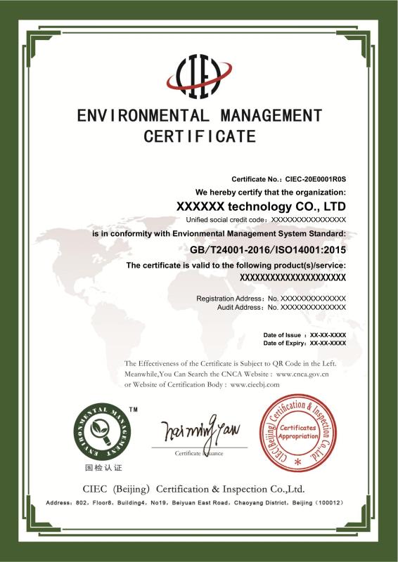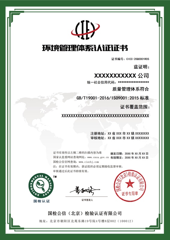 环境管理体系认证证书