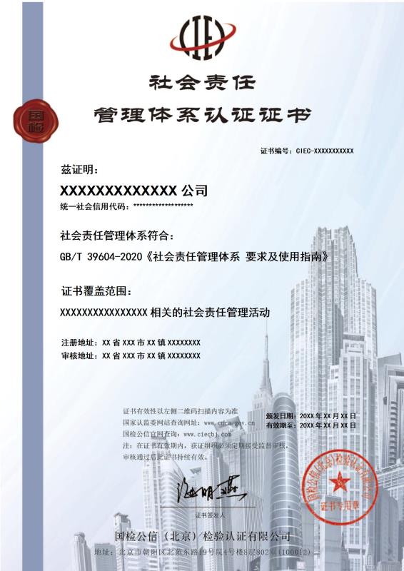 社会责任管理体系认证证书