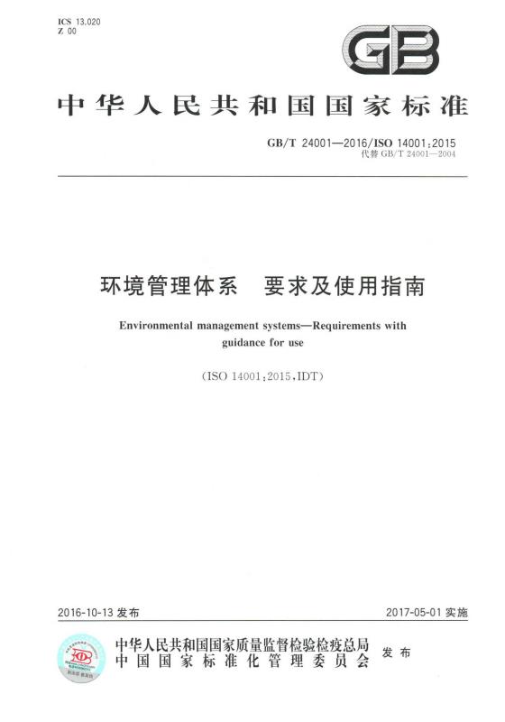 GB/T24001-2016/ISO14001:2015 环境管理体系标准